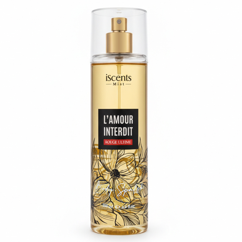 iSCENTS L’AMOUR INTERDIT ROUGE ULTIME Body Splash complète parfaitement le parfum iSCENTS L’AMOUR INTERDIT ROUGE ULTIME en apportant fraîcheur et légèreté pour un usage quotidien. Son sillage subtil et élégant permet de prolonger le parfum sans l’alourdir, offrant ainsi un parfum équivalent accessible et de qualité. Idéale pour les femmes qui veulent allier sophistication, audace et sensualité à chaque instant.